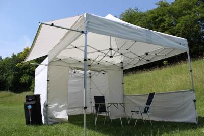 So entsteht ein angenehmer Raum für die Nutzung in der Freiteit, oder die Faltzelte ergeben einen offenen und effizienten Messestand.