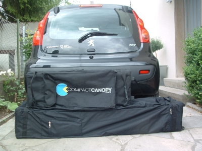 In dem Fahrzeug auf dem Bild sind 2 komplette Compact Canopy Faltzelte, ohne die Rückbank umzulegen.