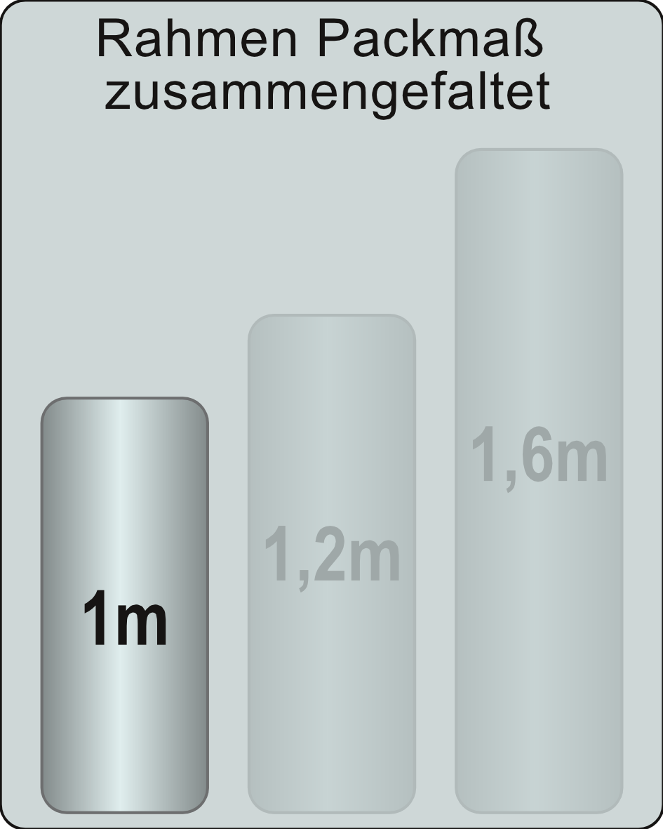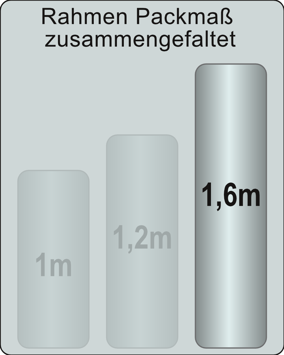dann kann das Packmaß eine große Rolle spielen. Die Standardfaltzelte haben ein Packmaß von 1,6m. Compact Canopy ist zusammen gefaltet nur 1m lang.