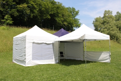Anstatt Zeit und Transportraum mit einem Faltzelt für den Marktstand zu verschwenden, mieten sie den Pavillon. Er steht fix und fertig wenn sie auf das Ausstellungsgelände kommen. Bei Abbau räumen Sie nur Ihre Ware und Tische ein, um das Ausstellungszelt kümmern wir uns.