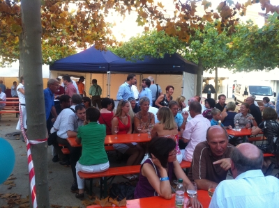 Mit einer geschmackvollen Kombination verschiedener Farben hebt sich das Faltzelt angenehm von den anderen Marktzelten ab.