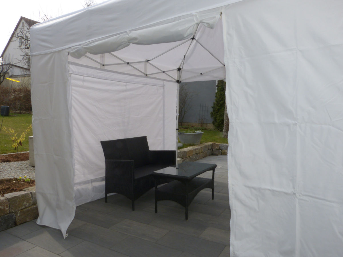 3x3m Faltzelt inklusive 4 Wänden in Tragetasche.