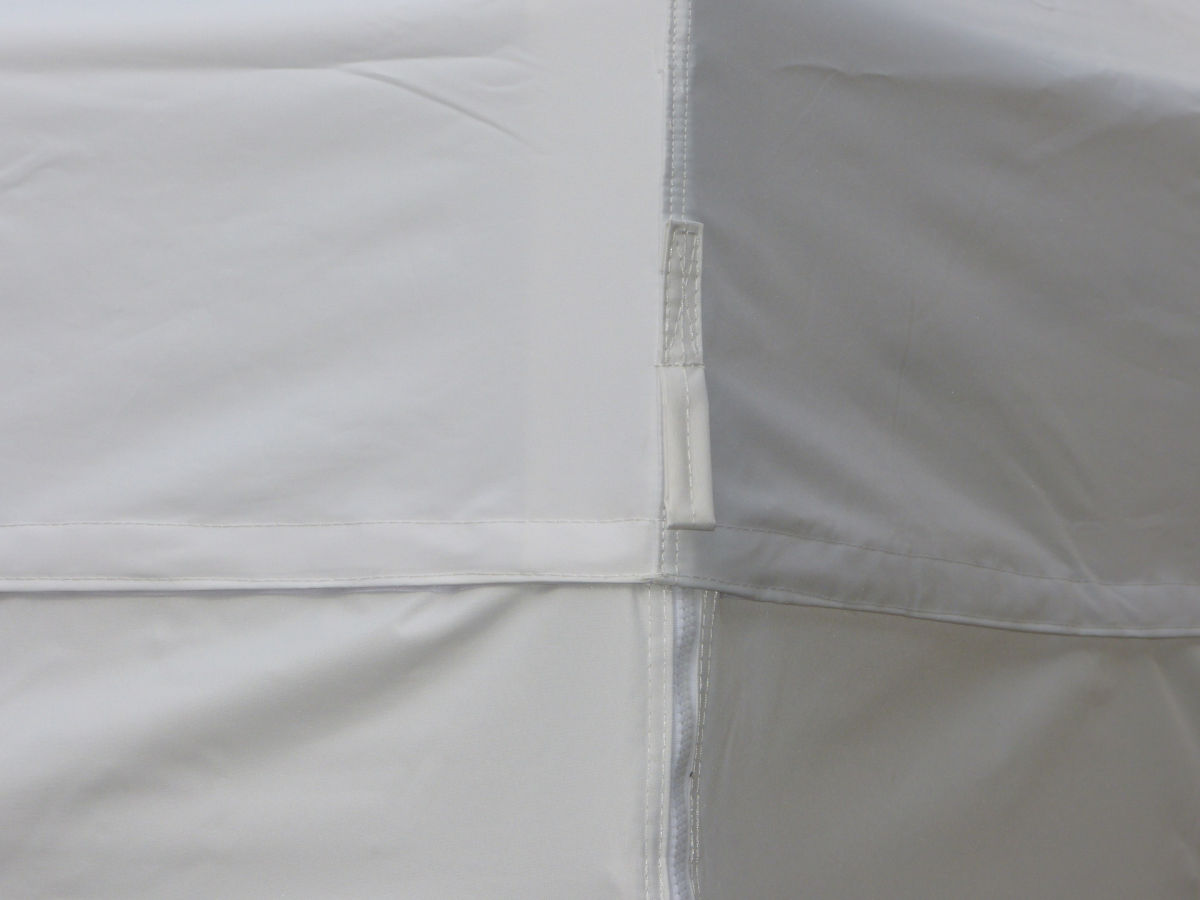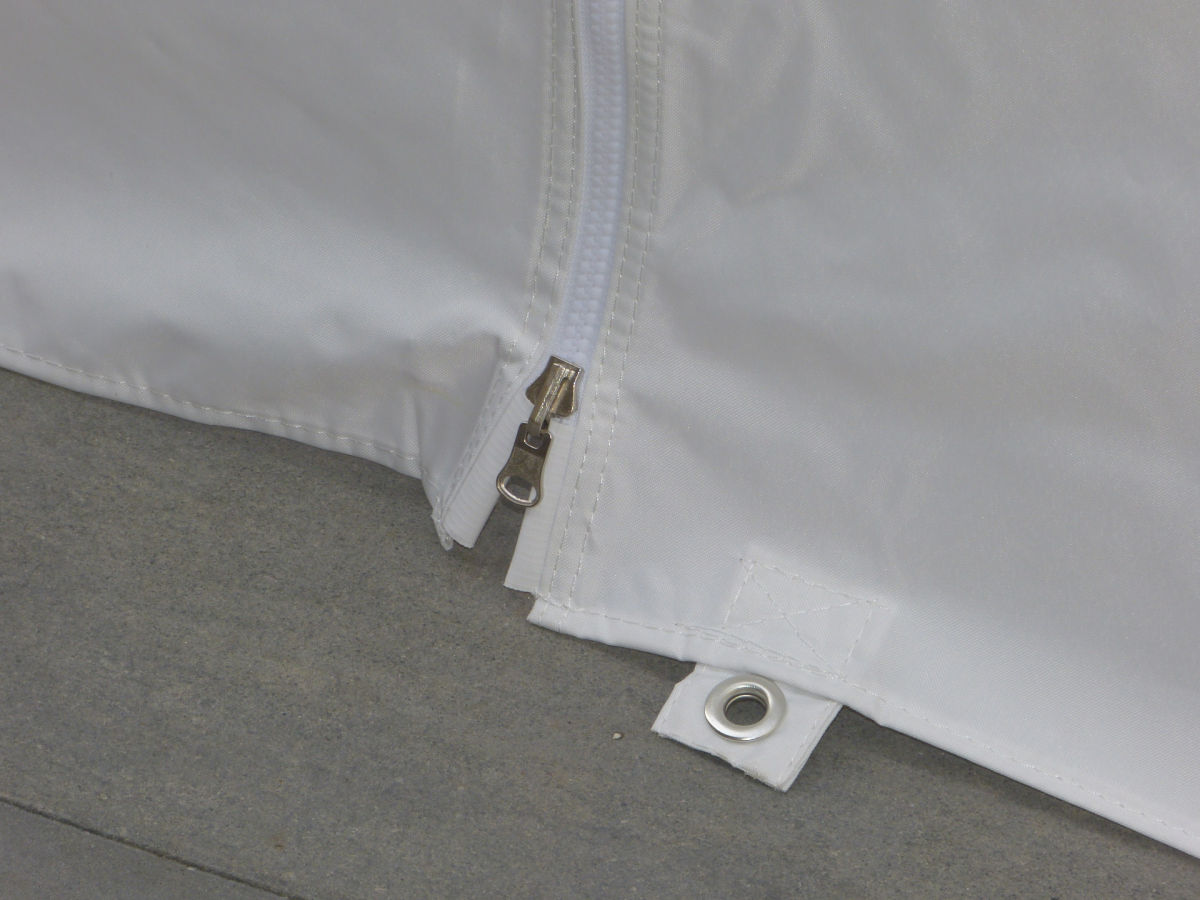 Die Reißverschlüsse an den Wänden für das Faltzelt sorgen nicht nur für einen besseren Schutz der Gäste und des Inventars. Die Wände sind über die gesamte Höhe verbunden und hängen gerade und straf. Das sieht einfach ordentlicher aus.