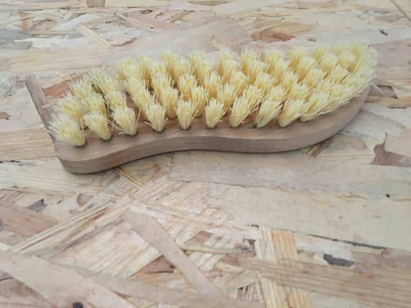Mit der kräftigen Bürste und kreisenden Bewegungen ohne viel Druck bekommt man das Material recht gut auch aus den Zwischenräumen der Fasern und des Kletts.